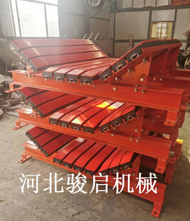 • 緩沖床主要用于替代緩沖托輥,緩沖床由緩沖條組成,而緩沖條主要應(yīng)用優(yōu)良的高彈性特種橡膠層充分有效吸收了物料下落時(shí)的沖擊力,大大降低了物料下落時(shí)對(duì)輸送帶的沖擊,真正的改善了落料點(diǎn)的受力狀況。并采用特殊的UHMW高分子聚乙烯表面,使輸送帶與緩沖條之間的摩擦系數(shù)降到最低,且耐磨性好。緩沖床的使用保證了輸送帶的面與面的接觸,受力均勻,有效防止了由于托輥斷裂、脫落造成的皮帶縱向撕裂,同時(shí)大大降低了皮帶被銳器或尖銳物料穿透后縱向撕裂的概率。